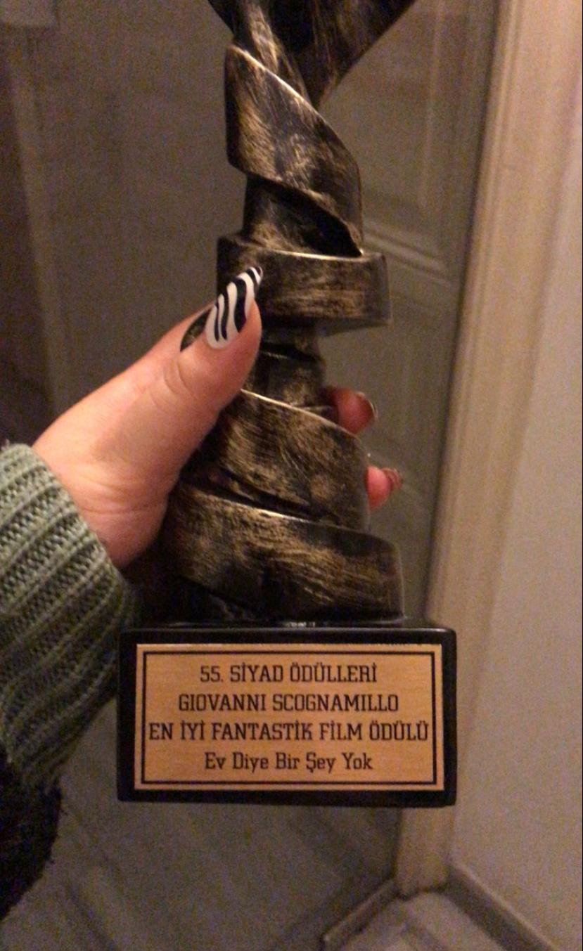 Award for her short film ‘Ev Diye Bir Şey Yok’ by Sinema Yazarları Derneği (SİYAD). https://www.ntv.com.tr/n-life/kultur-ve-sanat/siyad-odulleri-sahiplerini-buldu,HwN4gLP3JkWj0ryVlm_i-Q#