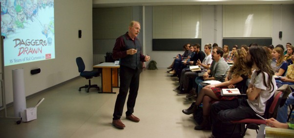 Kevin Kallaugher (KAL), the editorial cartoonist for The Economist magazine, was at Bilkent on October 6th to lead a workshop on politics and satire. The famous cartoonist shared his experience in drawing world leaders and current events. Kallaugher also discussed the challenges a political cartoonist faces. During the workshop, participants from the COMD and GRA departments made some cartoons.